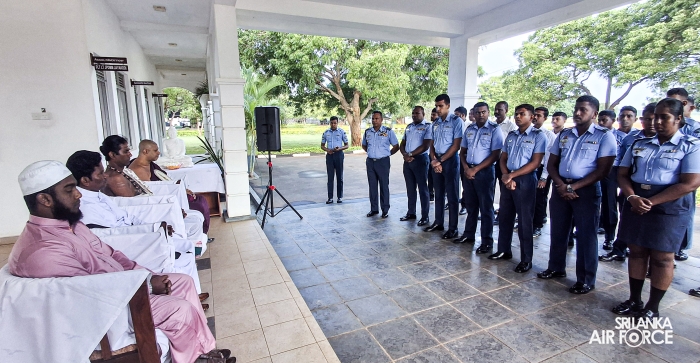 The day’s proceedings commenced with the customary Working Parade, reviewed by the Commanding Officer, Group Captain Suranga Seneviratne. Following the parade, the Commanding Officer and all personnel participated in multi-religious observances. Thereafter, personnel witnessed the anniversary address delivered by the Commander of the Air Force. The programme continued with the All Ranks Breakfast at the Airmen’s Mess.