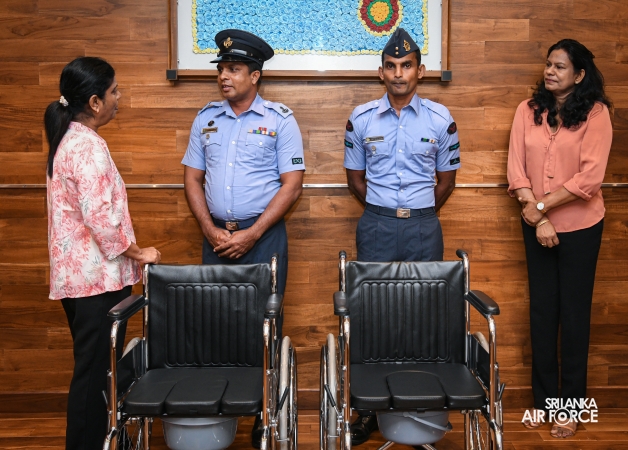 In addition, two commode wheelchairs and one standard wheelchair were handed over to three deserving service personnel, Warrant Officer KHWSK Jayarathne, Corporal Sanjanie HHT and Leading Aircraftman Sampath DACA, for the use of their needy parents.