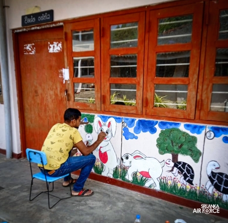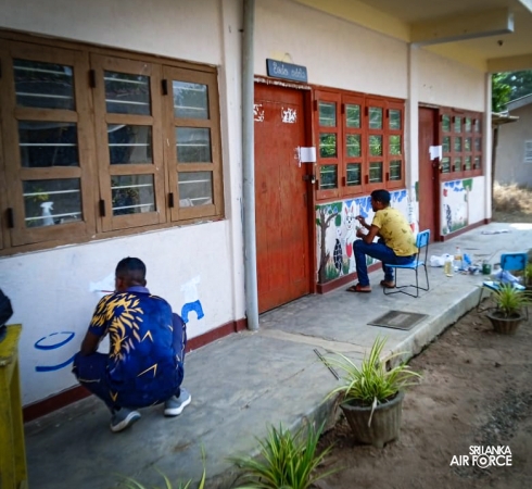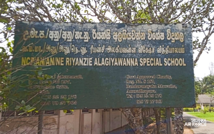 In parallel with the anniversary celebrations, No. 33 Land Based Air Defence Wing organized a community service initiative involving a cleaning and refurbishment programme at Riyansi Alagiyawanna Special College, Anuradhapura, where more than 60 students with special needs are currently receiving education.