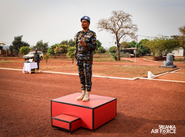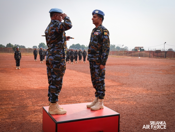 During the ceremony, the outgoing Contingent Commander of the 10th Aviation Contingent, Group Captain DUE De Silva RSP and Bar, USP, MSc (Def & Strat Stu), psc, formally handed over command to Group Captain AR Pathirage (WWV and Bar, RSP and Bar, USP, Pg Dip (Def Mgt), who assumed duties as the Contingent Commander of the 11th Aviation Contingent. Following the successful completion of the traditional parade, Group Captain Pathirage officially took over command of the Sri Lanka Aviation Unit in MINUSCA.