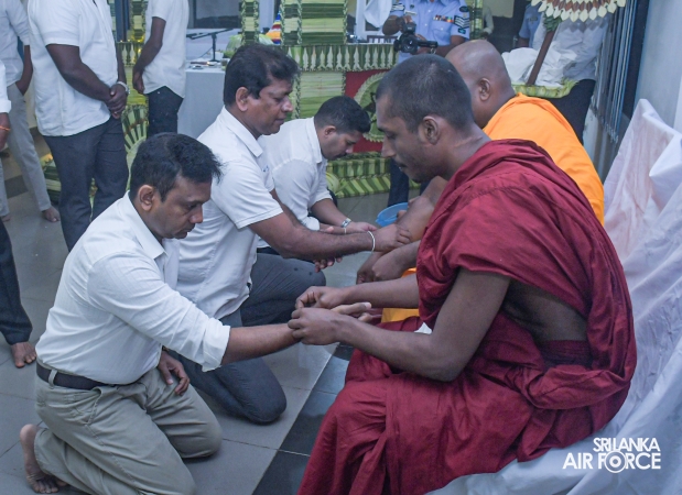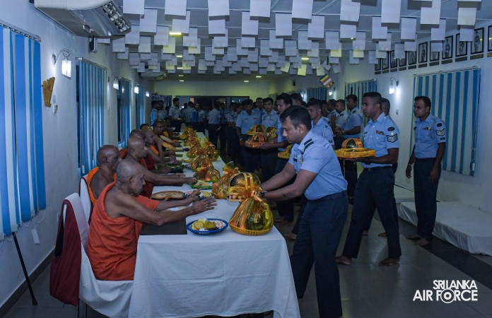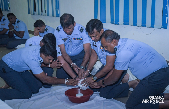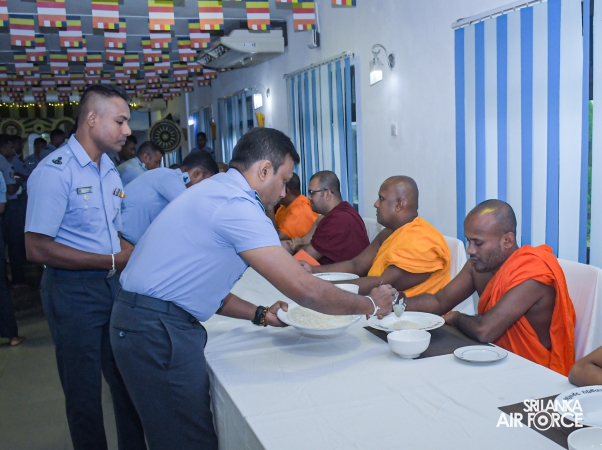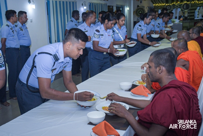 On the following day, almsgiving was offered to the Maha Sangha, invoking blessings for the continued progress, prosperity and success of the SLAF. The Base Commander, along with officers and other ranks of SLAF Base Vavuniya, participated in the religious activities, marking the occasion with reverence and devotion.