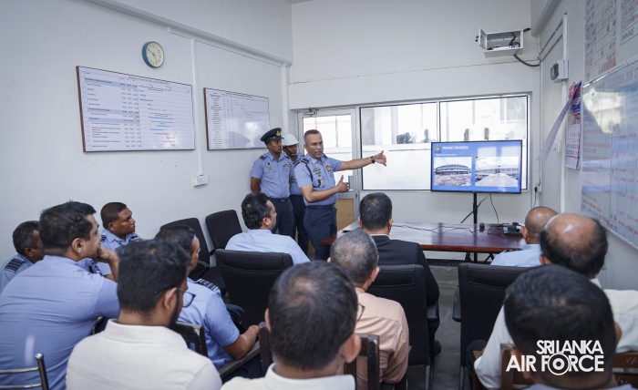 During the visit, which was attended by the Chairman of the Sri Lanka Transport Board, Mr. Sajeewa Kanakarathna, as well as representatives of relevant stakeholder institutions, the Secretary to the Ministry of Defence reviewed the progress of the renovation work and participated in a detailed progress review briefing delivered by the Director General Construction Engineering, Air Vice Marshal Vajira Senadeera. The briefing outlined the current status of construction activities, remaining work phases, timelines and key operational considerations.