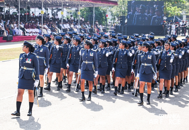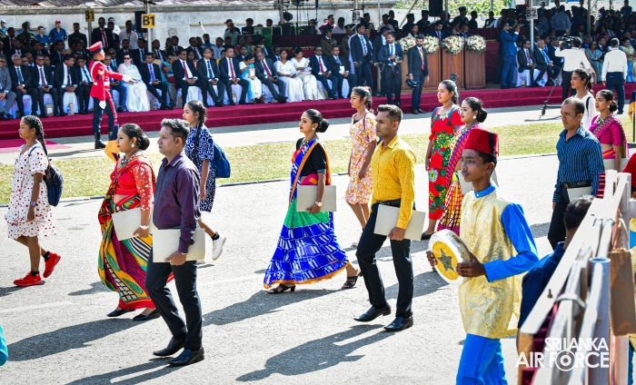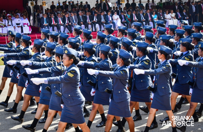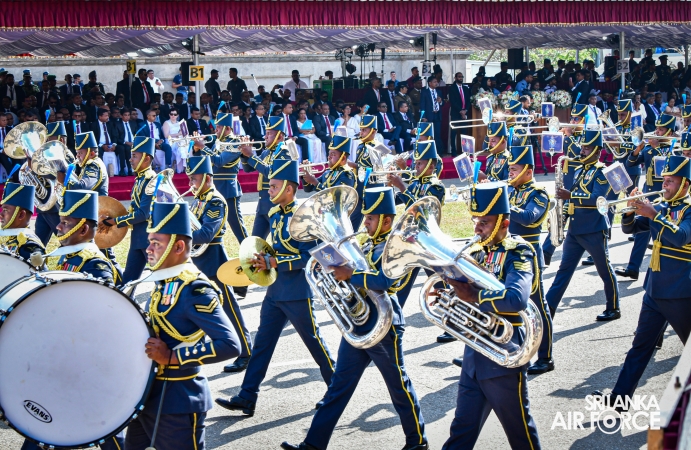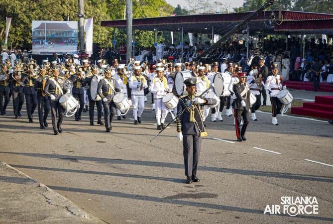 The Base Commander SLAF Base Ratmalana, Air Commodore Dinesh Jayaweera, joined as the Air Force Contingent Commander for the parade. The SLAF Ceremonial March was commanded by Wing Commander Prabath Senevirathna, which comprised five Squadrons, while Squadron Leader Gayan Joseph commanded the Air Force Ceremonial Band. The first squadron was commanded by Squadron Leader Aruna Wickramasinghe, the second by Squadron Leader Achiranga Ihalawela and the third squadron, which was made up of airwomen, was commanded by Squadron Leader Harshani Saputhanthri.