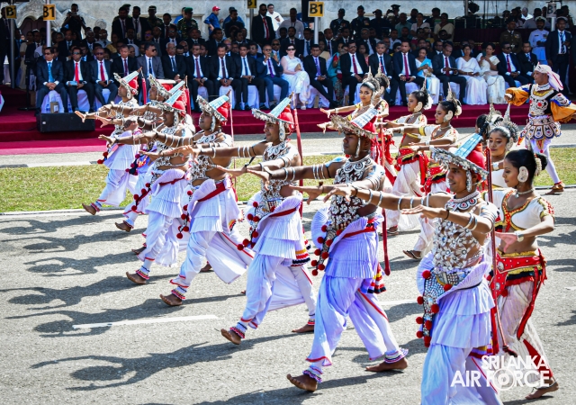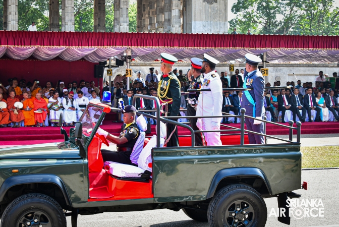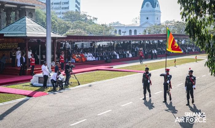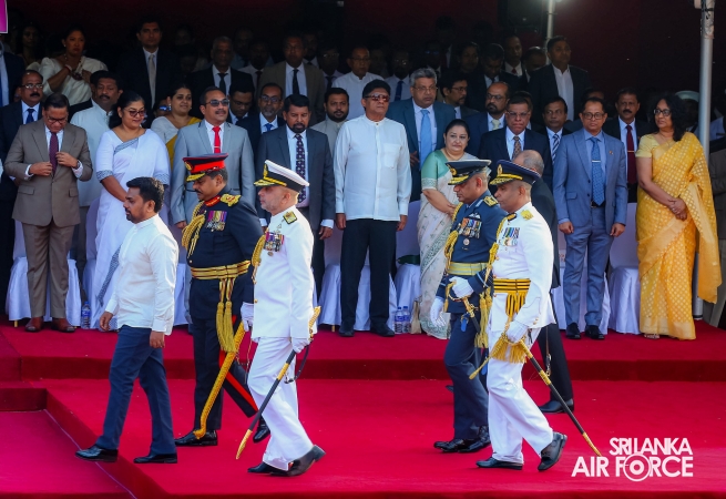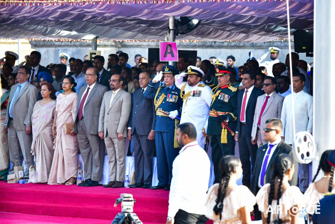 The arrival of the President of the Democratic Socialist Republic of Sri Lanka, His Excellency Anura Kumara Dissanayake, marked the commencement of the celebrations. The Prime Minister, Speaker of Parliament, Ministers, Chief Justice, the Governor of the Western Province, Deputy Ministers, Secretary to the Ministry of Defence, Tri-Services Commanders, Inspector General of the Police, Diplomats and other distinguished dignitaries graced the occasion.