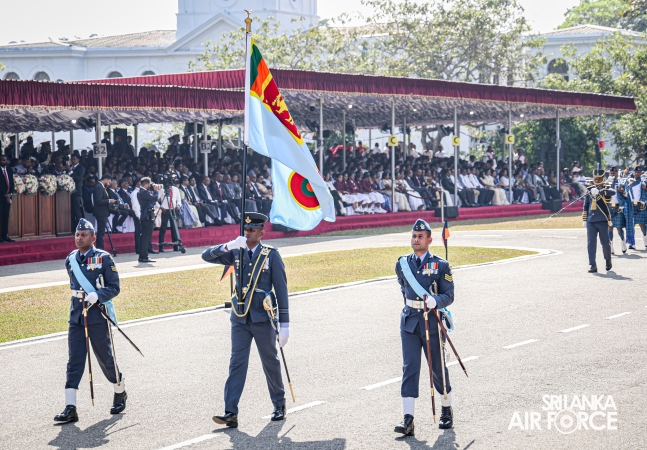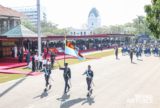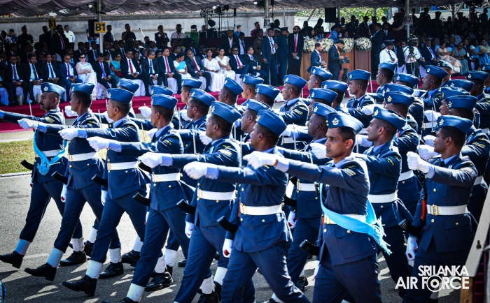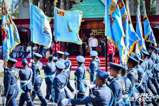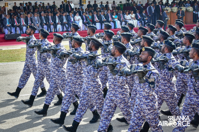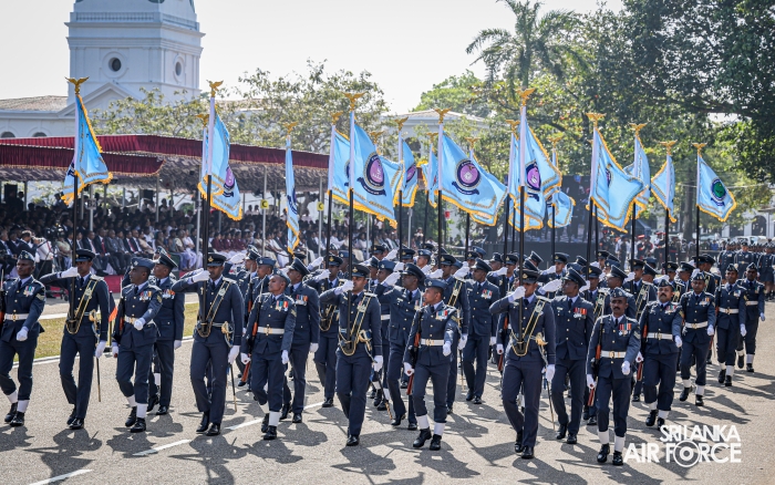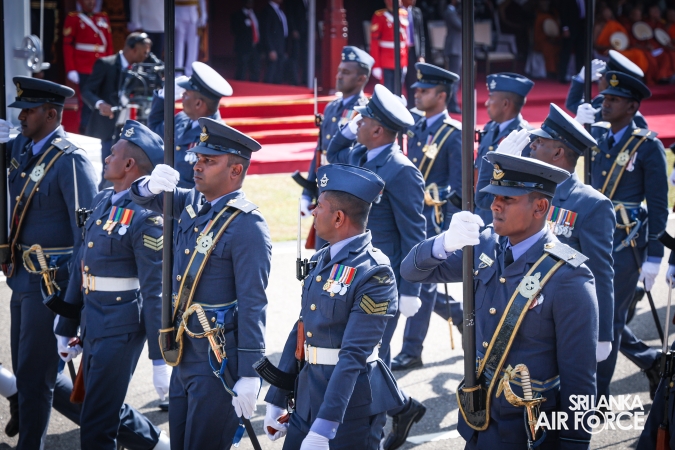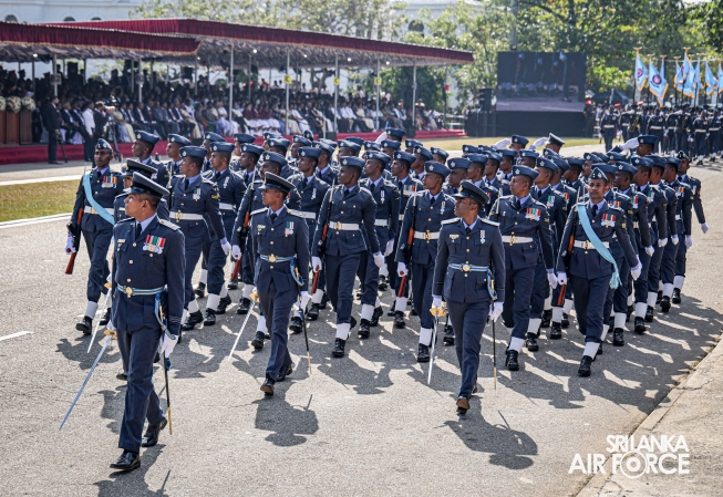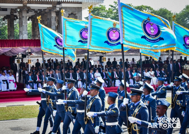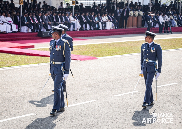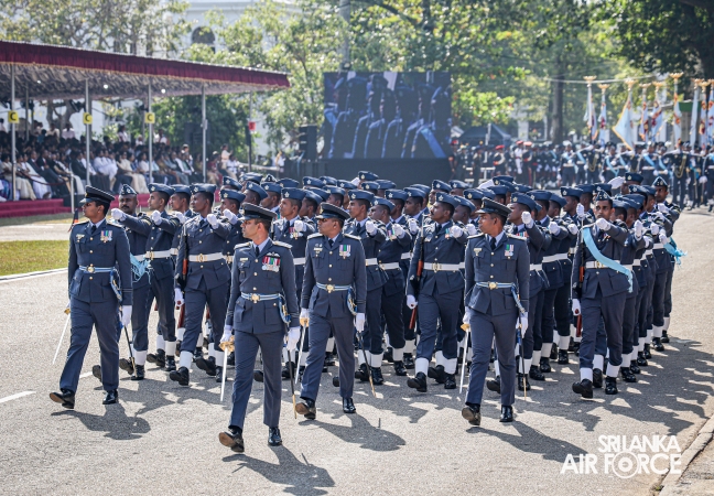 The overall operations commander on the ground during the ceremonial march past was Director General Ground Operations, Air Vice Marshal Ruwan Chandima and the overall parade coordinator was Wing Commander Asela Vithana, Staff Officer Ground VI of the Directorate of Ground Operations.