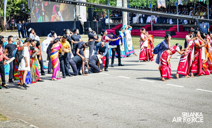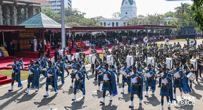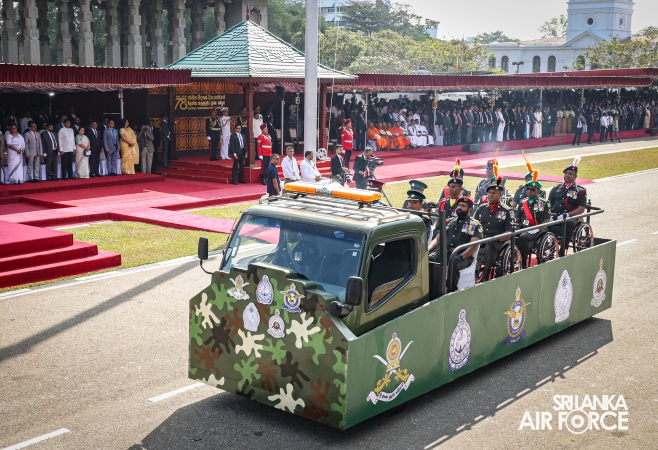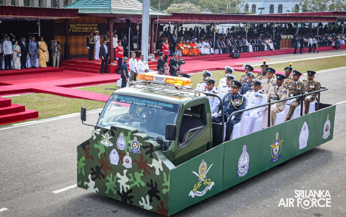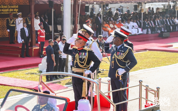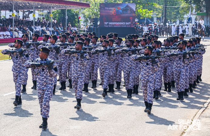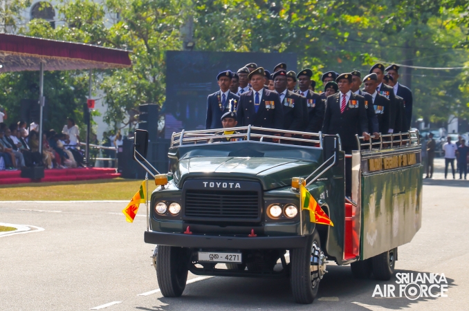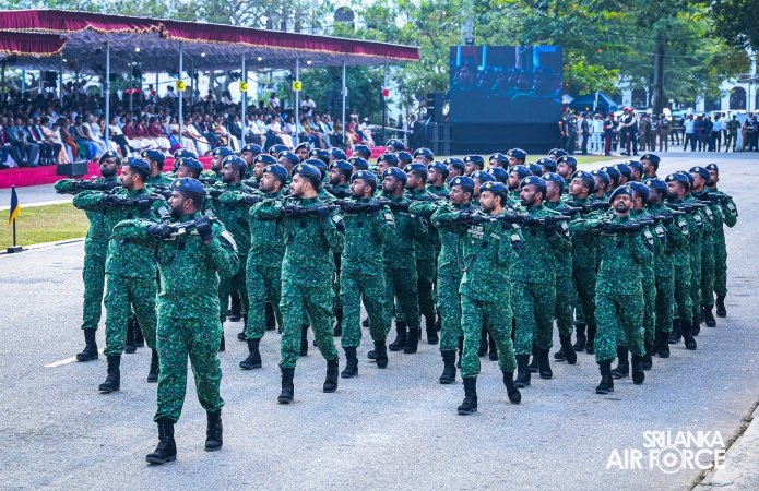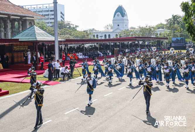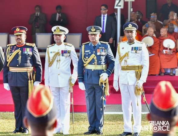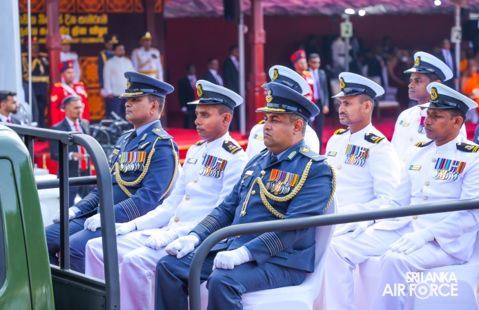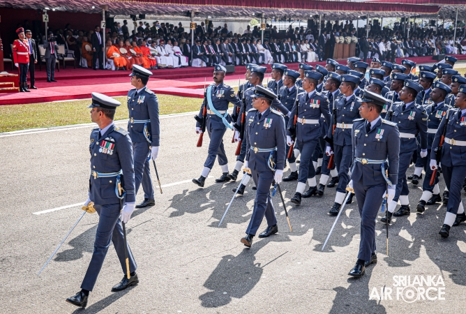 The overall operations commander on the ground during the ceremonial march past was Director General Ground Operations, Air Vice Marshal Ruwan Chandima and the overall parade coordinator was Wing Commander Asela Vithana, Staff Officer Ground VI of the Directorate of Ground Operations.