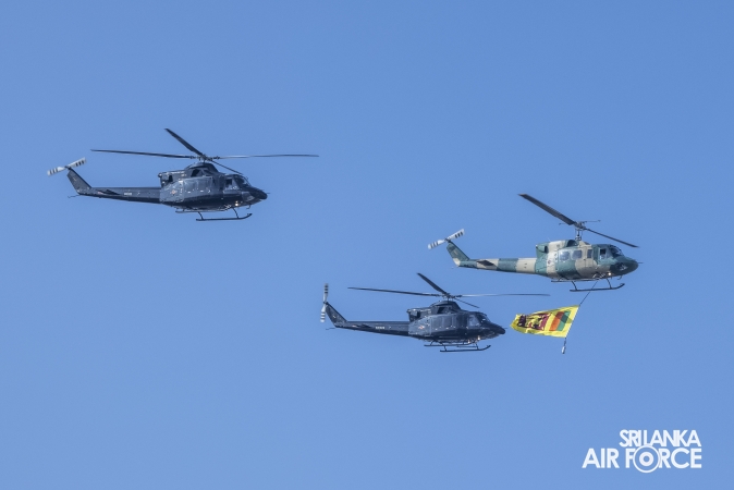 Director General Air Operations of the SLAF, Air Vice Marshal Dhammika Dias, was the overall operations commander of the Independence Day Fly Past, which included one Bell 212 Helicopter and two Bell 412 Helicopters. The Bell 212 Helicopter was captained by Group Captain Rasanka Wijewardena, while the Bell 412 Helicopters were captained by Squadron Leader Nirmal Perera and Squadron Leader Dileep Meegahakumbura. The Fly Past was navigated by Wing Commander Rukshan Gamlakshage.