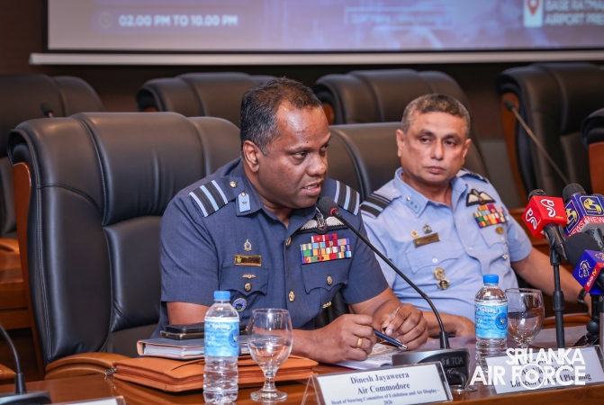 The second briefing was on the SLAF 75th Anniversary Celebration Exhibition and Air Display, which will be held on 6, 7 and 8 March 2026 at SLAF Base Ratmalana. The briefing was chaired by Director General Planning, Air Vice Marshal Deshapriya Silva and joined by the Chairman of the Organizing Committee and Base Commander SLAF Base Ratmalana, Air Commodore Dinesh Jayaweera.