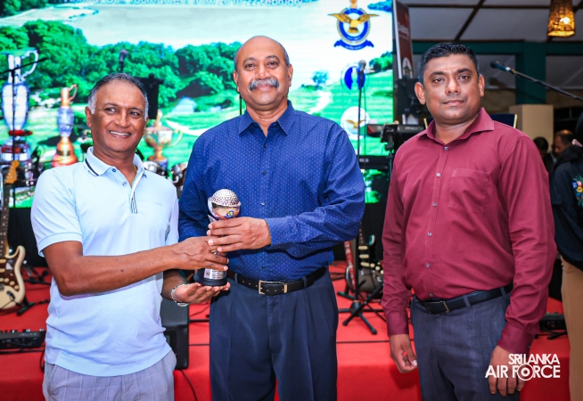 Mr. Marcos Gomez Chicano won the Commander's Cup trophy, securing the highest marks in the Gents category, while Ms. Niloo Jayatilake won the Ladies' Trophy. Mr. Derrick Ponnambalam secured the Runners-Up position in the Gents Category while Mrs. Roshini Sangani secured the Ladies’ Runners-Up position. Maj Gen Srinath Rajapakshe (Retd) and Mr. Anthony Fernandopulle received the awards for the longest drive and the nearest to the pin in the Gents’ Category, while Mrs. Jade Jiggens and Ms. Manori Jayakody took the honours for the longest drive and the nearest to the pin, respectively, in the Ladies’ Category. Group Captain Prabath Wijekoon adjudged both the Six Hidden Holes Award and Commander’s Island Green Award. The Wooden Spoon was received by Mr. Bandula Senarathne. To encourage participation from lower handicappers, two awards for "Gross Winner" were also included for both Men’s and Women’s categories. Mr. Derrick Ponnambalam secured the award for the Gross Winner in the Men’s category while Mrs. Jade Jiggens received the award for the Gross Winner in the Women’s category.