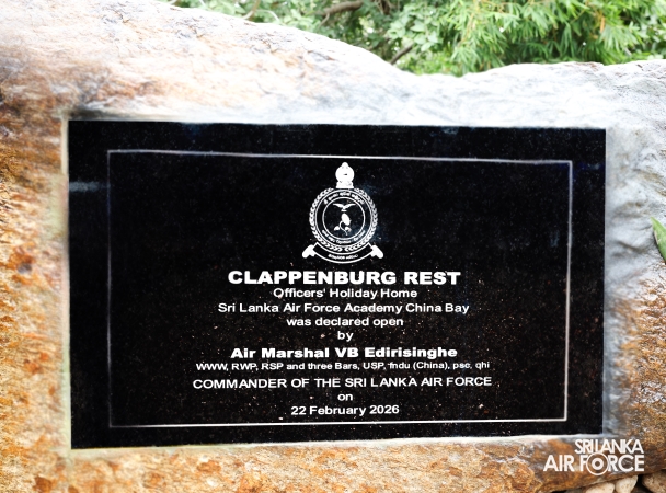 The Commander of the Air Force, Air Marshal Bandu Edirisinghe declared open the newly renovated Officers’ Holiday Home, ‘Clappenburg Rest’ , at the SLAF Academy China Bay today (22 February 2026).