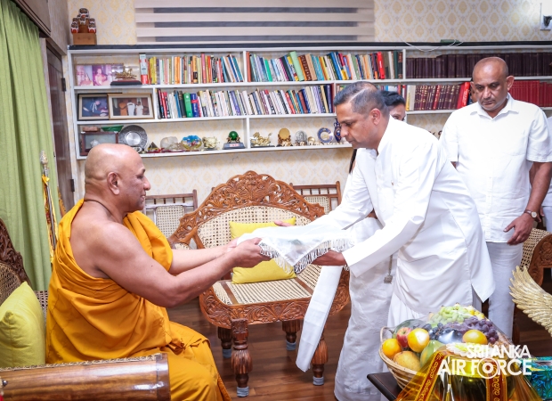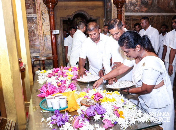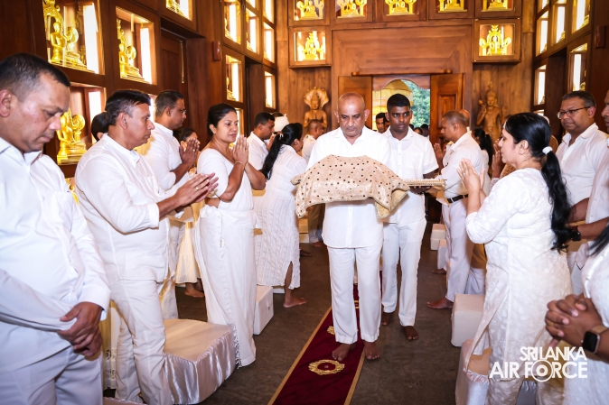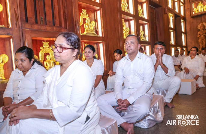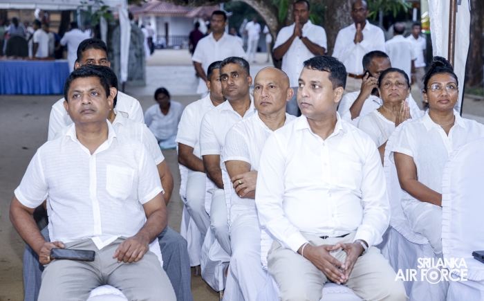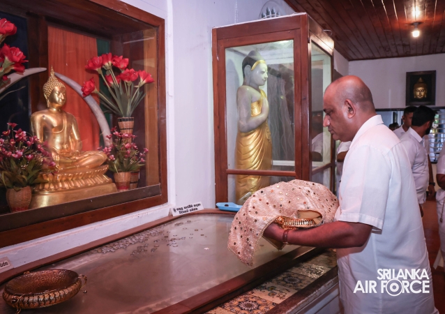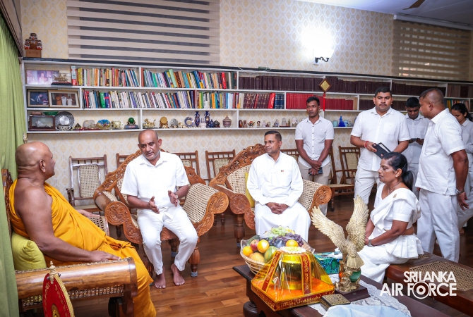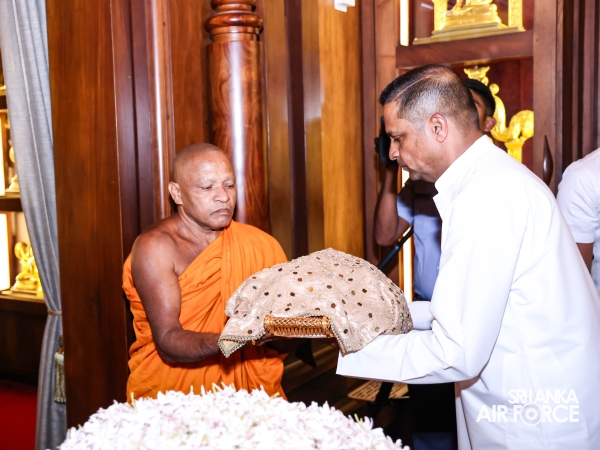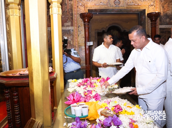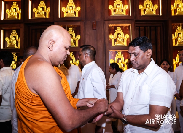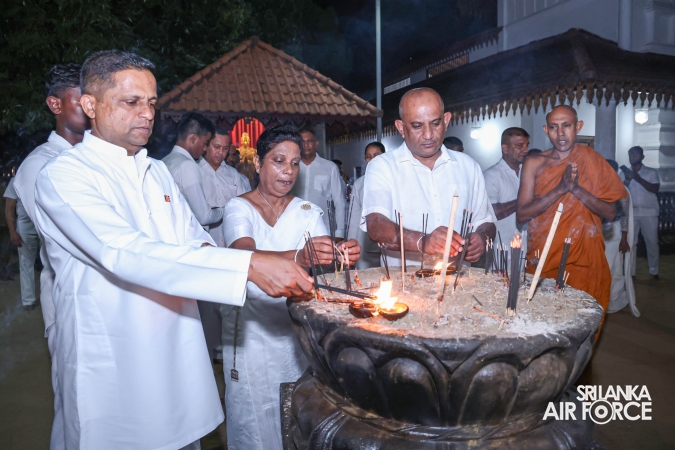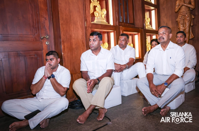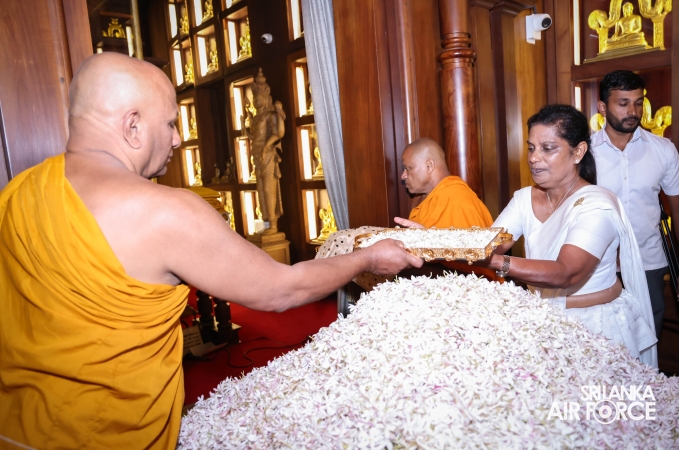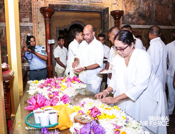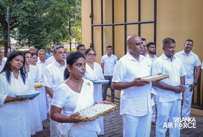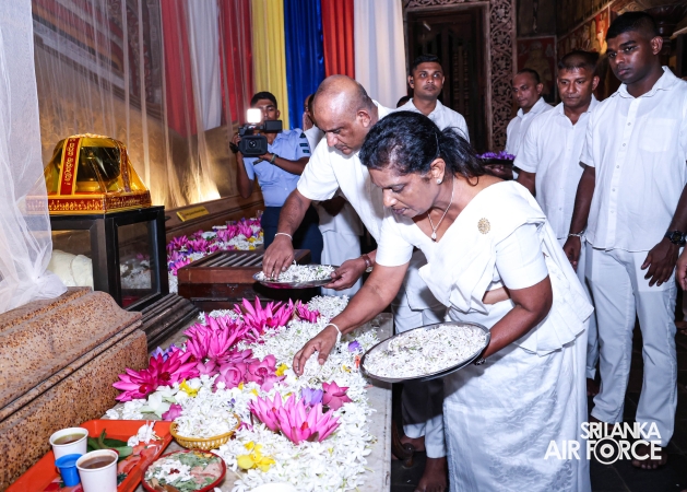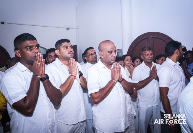 The Sri Lanka Air Force, which is gearing up to celebrate its 75th anniversary as the ‘Guardians of the Skies' conducted the ‘Pichcha Mal Pooja' at Kelaniya Raja Maha Viharaya for the ninth consecutive time. The event was organized under the auspices of the Commander of the Air Force, Air Marshal Bandu Edirisinghe today evening (24 February 2026) by SLAF Headquarters Sri Jayewardenepura to invoke blessings for the SLAF personnel and the entire Air Force. The Chairperson of the SLAF Seva Vanitha Unit, Mrs. Krishanthi Edirisinghe also participated in the event.