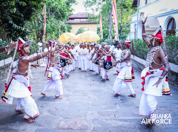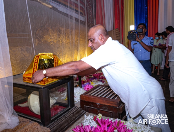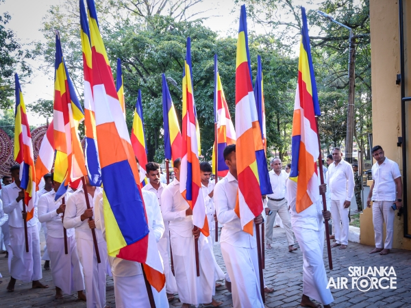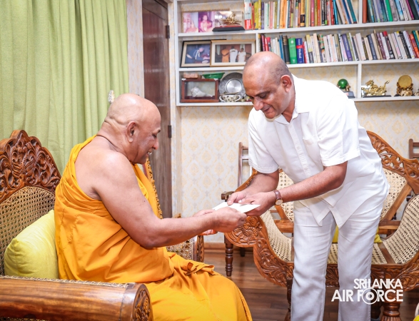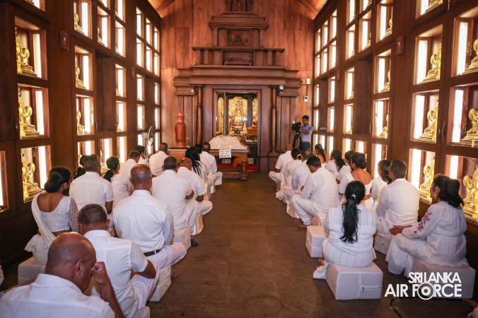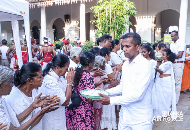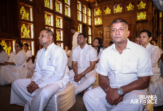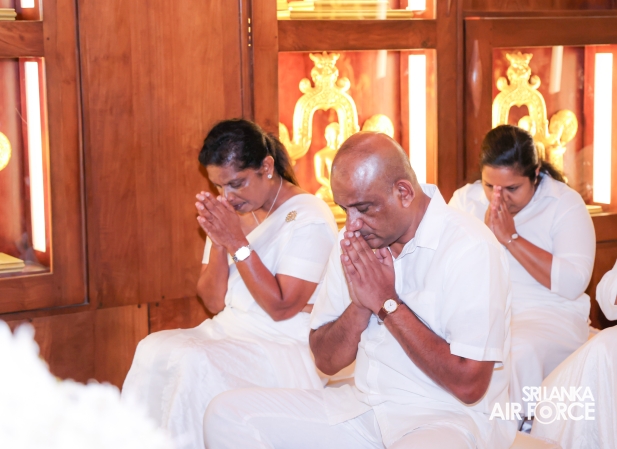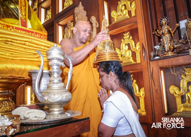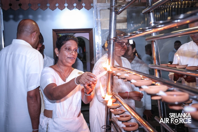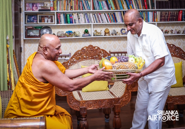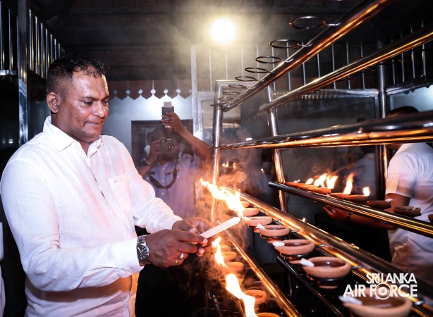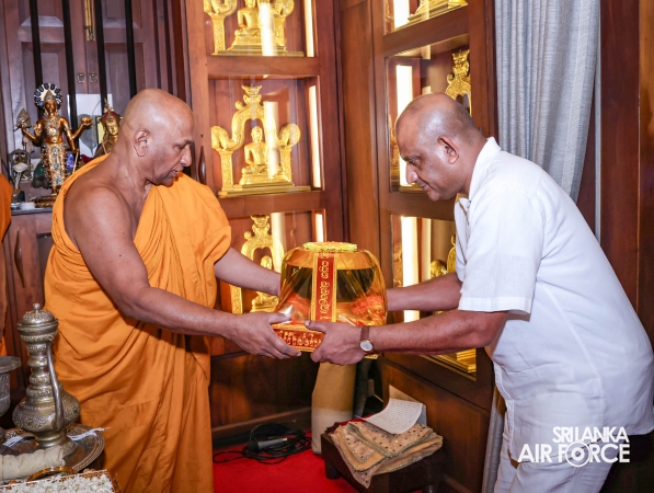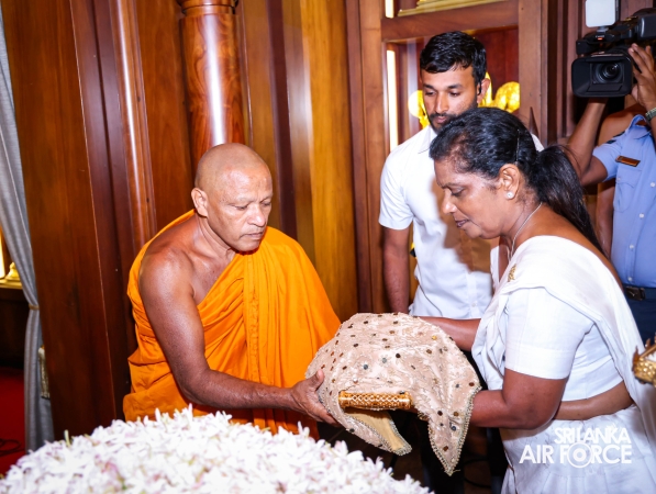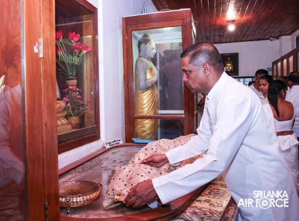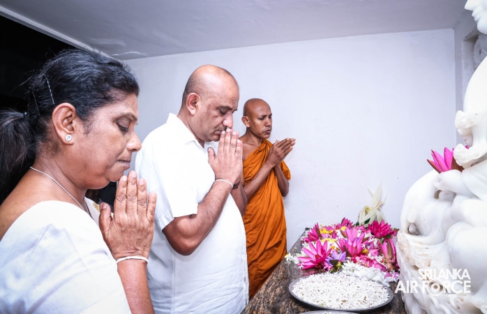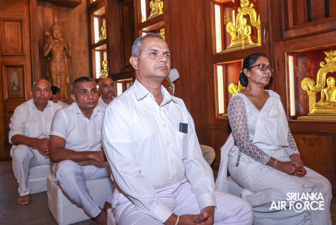 The Sri Lanka Air Force, which is gearing up to celebrate its 75th anniversary as the ‘Guardians of the Skies' conducted the ‘Pichcha Mal Pooja' at Kelaniya Raja Maha Viharaya for the ninth consecutive time. The event was organized under the auspices of the Commander of the Air Force, Air Marshal Bandu Edirisinghe today evening (24 February 2026) by SLAF Headquarters Sri Jayewardenepura to invoke blessings for the SLAF personnel and the entire Air Force. The Chairperson of the SLAF Seva Vanitha Unit, Mrs. Krishanthi Edirisinghe also participated in the event.