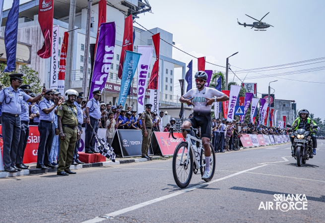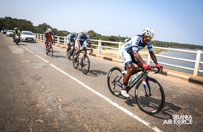 The First leg of the 27th Guwan Hamuda Papedi Sawariya ended at Puttalam today (27 February 2026) having covered a distance of 127.5 km. UAE Cyclist, Mohommad Alharbi won the 1st leg of the race while De Silva LSC and Fernando MNN both from SLAF finished as second and third places respectively.