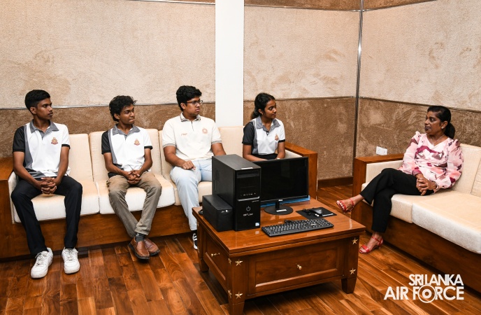 The computers were handed over to the students by the Chairperson SLAF Seva Vanitha Unit, Mrs. Krishanthi Edirisinghe in the presence of the Director General Electronic and Computer Engineering, Air Vice Marshal Asitha Hettiarachchi, Director Information Technology, Group Captain SKHC Sooriyaarachchi, senior officers and other ranks of the Seva Vanitha Unit.