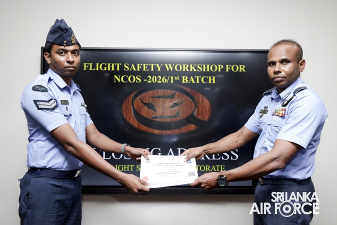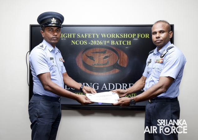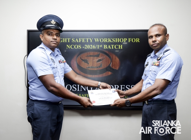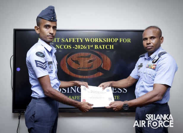 The 22nd consecutive Flight Safety Workshop for Non-Commissioned Officers (NCOs), marking the first batch for 2026, was recently concluded at the No. 61 Flight Lecture Hall of SLAF Base Ratmalana. The five-day programme saw the participation of 36 NCOs representing all Directorates.