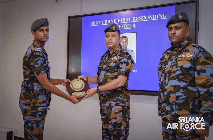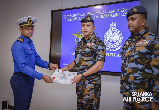 The Certificate Awarding Ceremony of No. 08 Chemical Biological Radiological Nuclear Explosive Basic Course was held yesterday (25 March 2026) at No 49 CBRNE Wing SLAF Base Katunayake under the patronage of the Director General Ground Operations, Air Vice Marshal Ruwan Chandima as the Chief Guest.