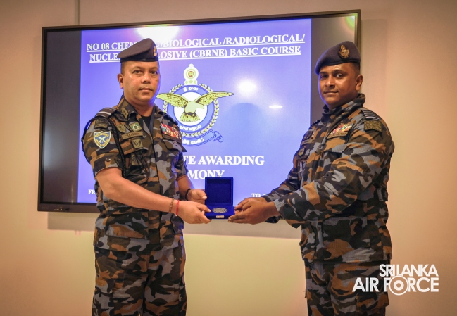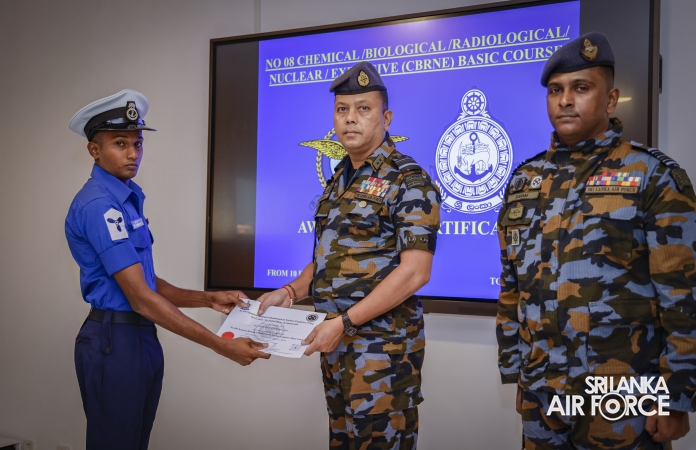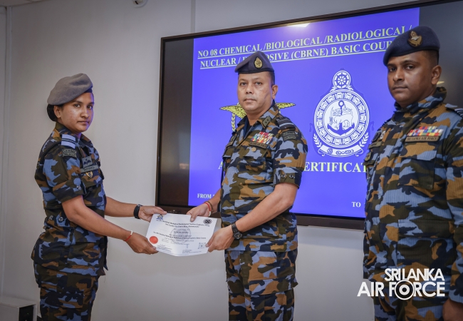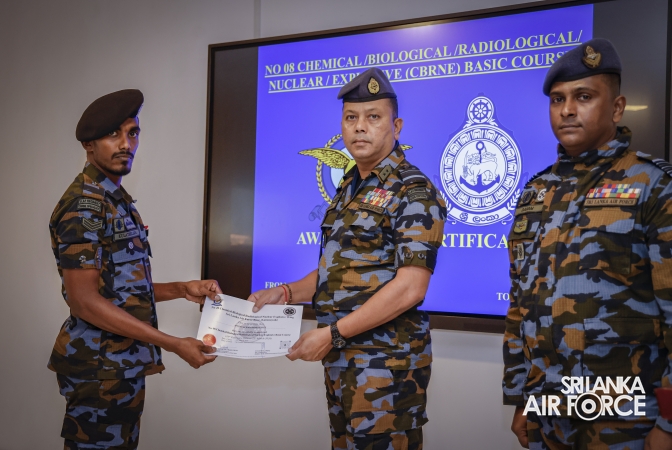 The No. 08 CBRNE Basic Course comprised with Two SL Navy Officers, Three SLAF Officers, Two Sailors and nine Airmen . At the ceremony, 16 awardees received certificates marking the successful completion of the course.