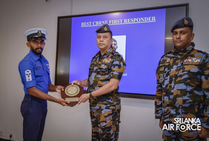 Flying Officers TAI Perera was recognized as the Best CBRNE First Responding Officer among the Officers for Outstanding Performance in the No. 08 CBRNE Basic Course. Similarly, Leading Mechanical Engineer Samarasiri DDD from SL Navy was awarded the title of Best CBRNE First Responder in recognition of skills and dedication.