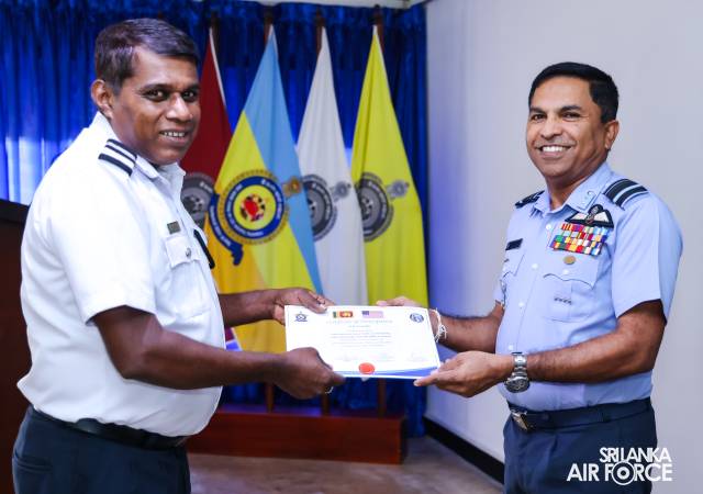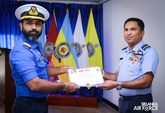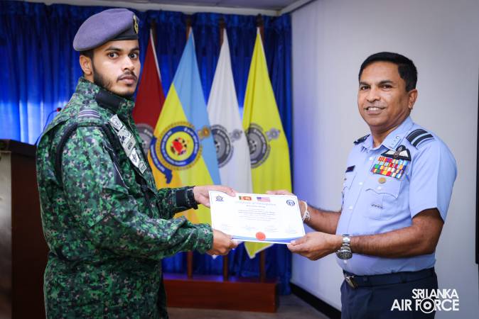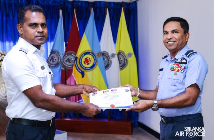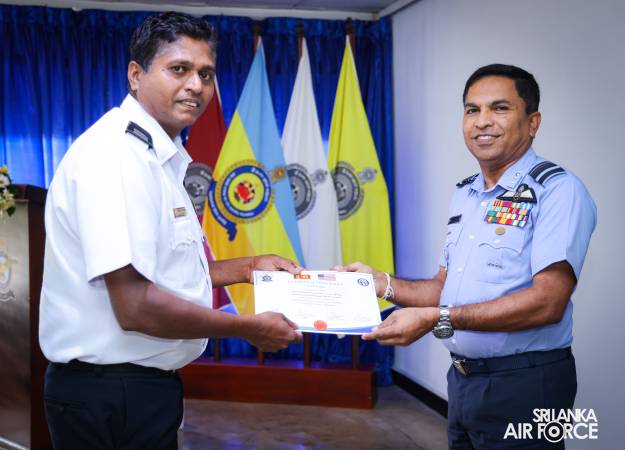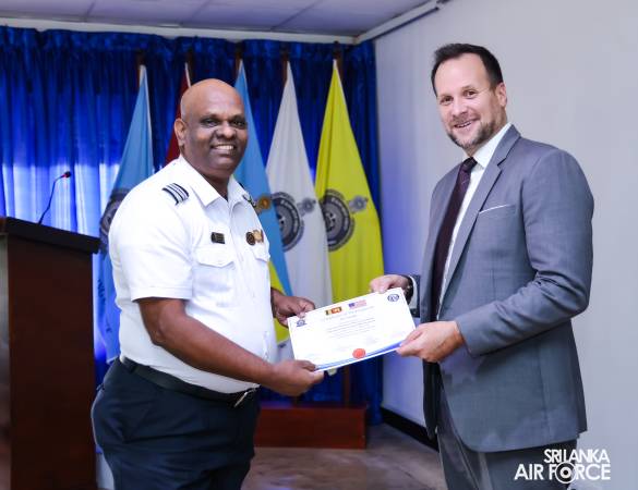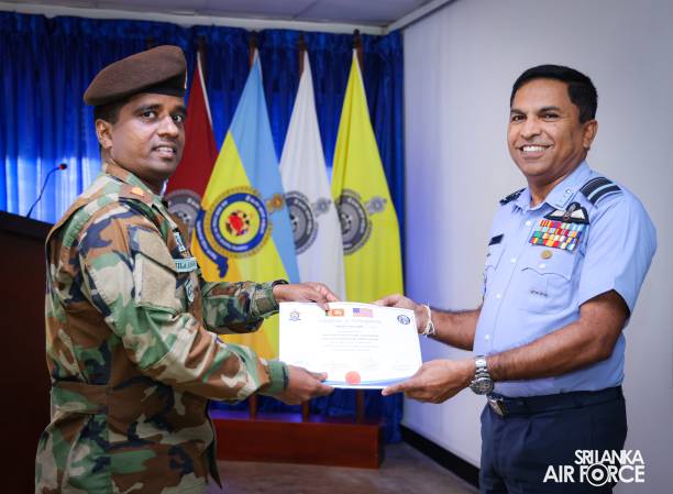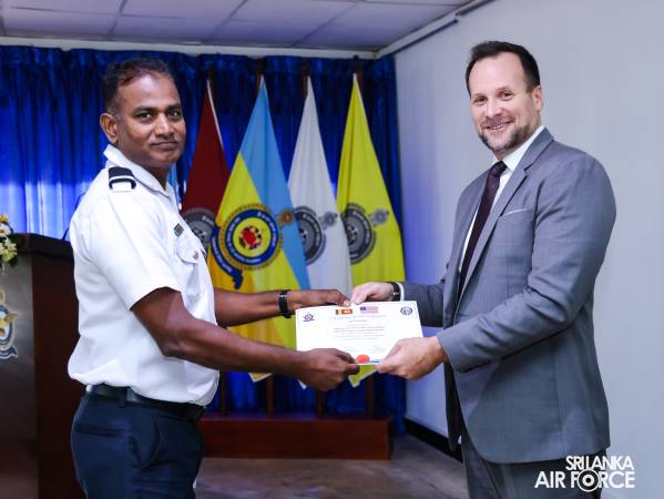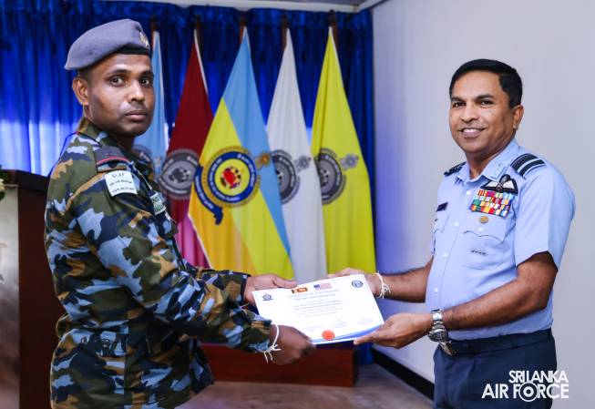 The closing ceremony and certificate awarding were held yrsterday (27 March 2026) at the Fire School, SLAF Base Katunayake. The Director General Air Operations, Air Vice Marshal Dhammika Dias graced the occasion as the Chief Guest. The event was also attended by the Assistant Defence Attaché of the United States Embassy in Colombo, Mr. Seth Nevins, Chief Fire Officer, Group Captain Prasanna Jayawickrama and Commanding Officer of the Fire School and Fire Tender Maintenance Squadron, Wing Commander Nuwan Ranneththi.
