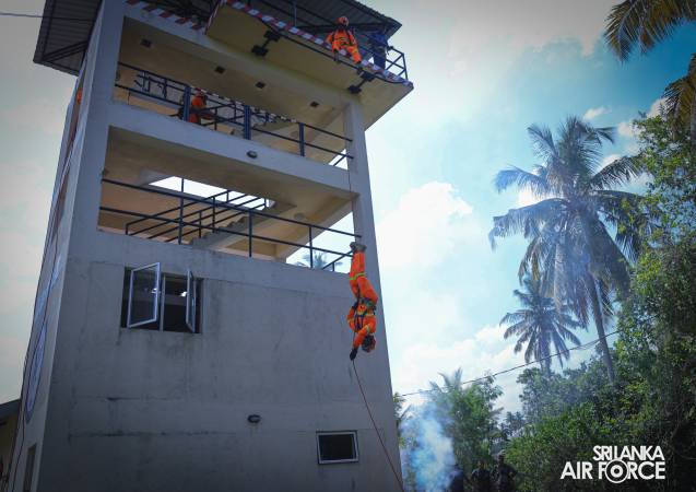 Special emphasis was placed on rope rescue techniques through practical sessions and knowledge-sharing with the SLAF rope rescue team, as well as confined space rescue demonstrations. Additional areas covered included airport rescue and firefighting, fire investigation and a presentation on the management of fire departments in the United States. Participants were also introduced to the National Incident Management System (NIMS) practiced in the United States and its application at state level.