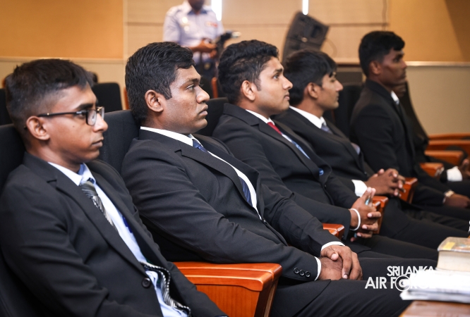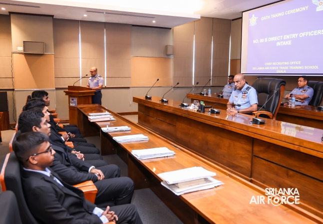 Seven newly enlisted Student Officers of the 80 B Intake of Direct Entry Officers were administered their oaths today (17 April 2026) at Air Force Headquarters in the presence of the Commander of the Air Force, Air Marshal Bandu Edirisinghe. This was done prior to departing for their Basic Combat Training at the SLAF Combat Training School, Diyatalawa.