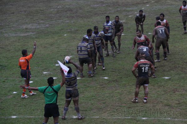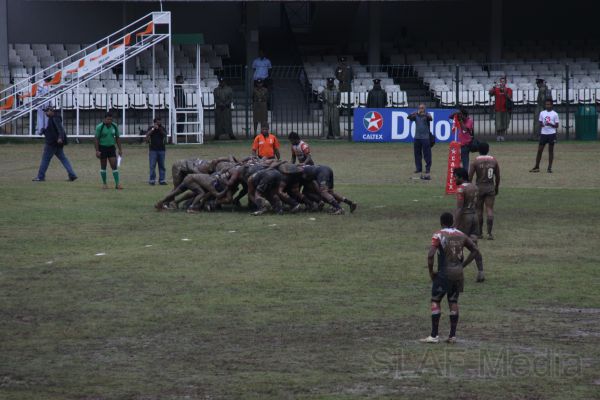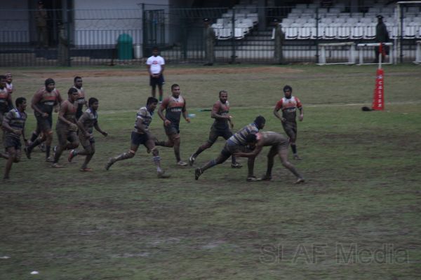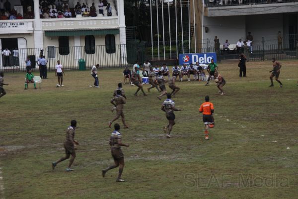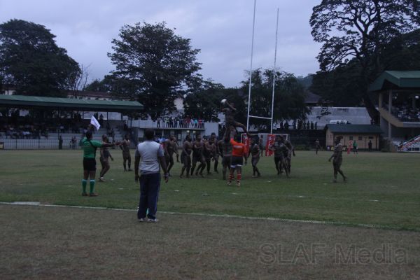 Pradeep Liyanage of Kandy scoring a try put the home team in front. A few minutes later, disappointing the home crowd, the combination of Wing three Mithun Hapugodage and first center Radhika Hettiarachchi put the SLAF in the driving seat by scoring a goal. At the end of the first half SLAF was leading the game by 7 points to 5.