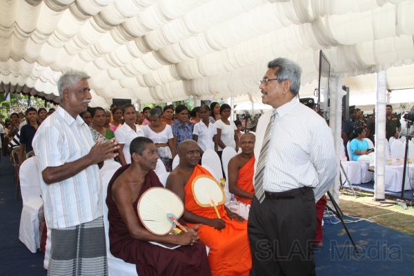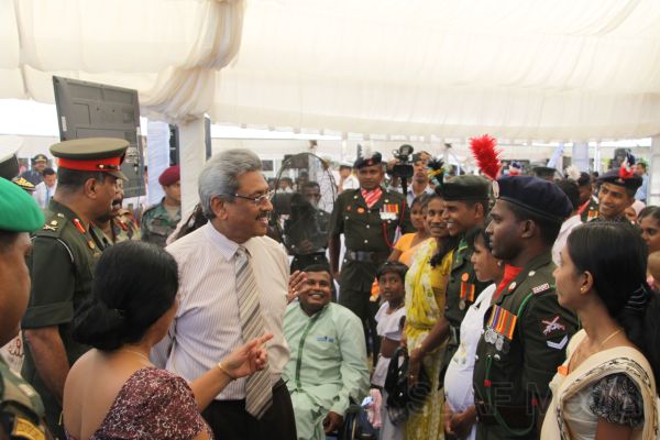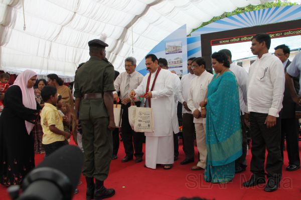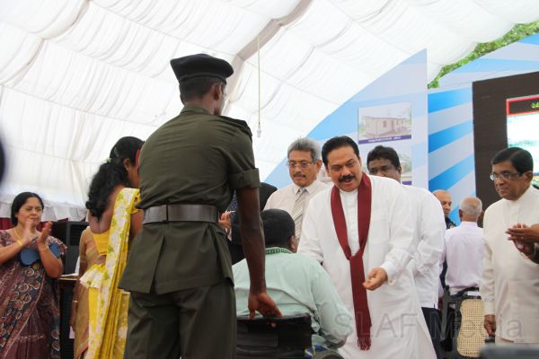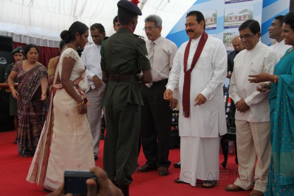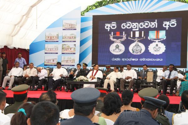 HE the President Mahinda Rajapaksa handed over 14 houses built in Ampara, Batticaloa and Trincomalee, under the 6th stage of the “Api Wenuwen Api housing project for war heroes” yesterday (19th October 2011) at the Divulana Maha Vidyalaya, Piyangala, Ampara. The housing project is being conducted under the guidance and close supervision of the Defence Secretary Gotabaya Rajapaksa and Chairperson of the Defence Ministry's Seva Vanitha Unit, Mrs. Ioma Rajapaksa.