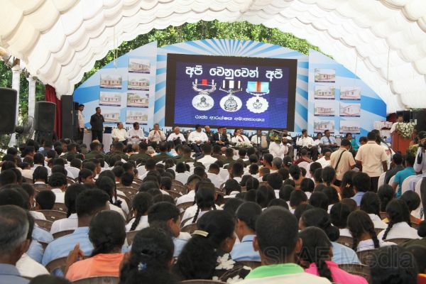 The secretary of Defence Mr. Gotabaya Rajapaksa, Chairperson of the Defence Ministry's Seva Vanitha Unit Mrs Ioma Rajapaksa, the Army Commander Lieutenant General Jagath Jayasuriya, the Navy Commander Vice Admiral D.W.A.S.Dissanayake and the Commander of the Air Force Air Marshal Harsha Abeywickrama and their ladies were also present on the occasion. Senior officers of the Armed forces and Police were also present on the occasion as were a large gathering of parents and residents of the area.