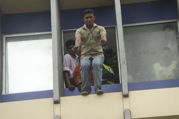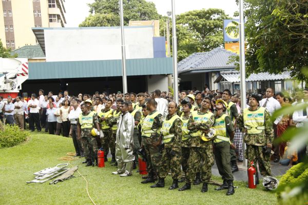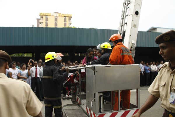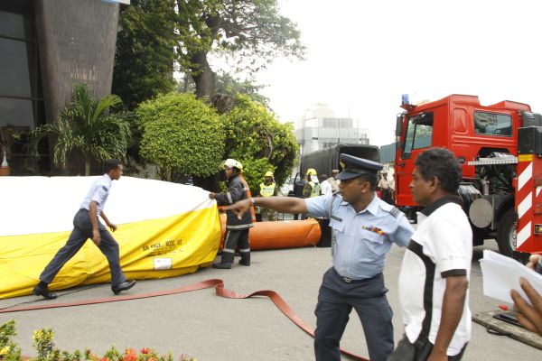 A Sri Lanka Army rescue team and the Colombo fire unit rushed to the scene and evacuated personnel out of the building. With arrival of SLAF fire fighters, personnel inside the building were evacuated using three processes depending on the situation and the height.