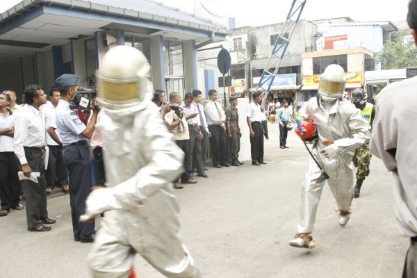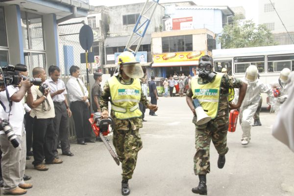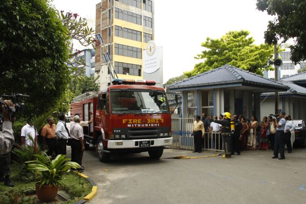 Today (21st October 2011) Sri Lanka Air Force Fire fighters carried out a fire evacuation drill at the Sri Lanka Insurance building located down Vauxhall Street.