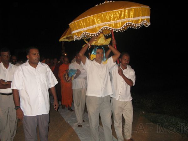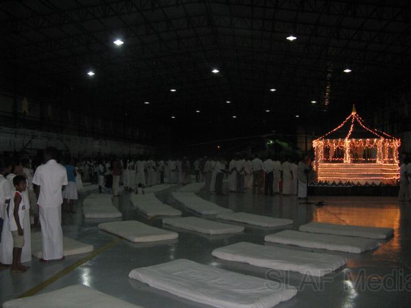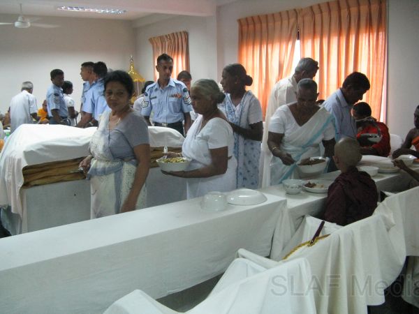 The Islamic ceremony took place at Hathamune Jumma Mosque on 17th November 2011 and the Christian ceremony was held at the Hingurakgoda Roman Catholic Church on 18th November 2011. Meanwhile as Buddhist religious activities, a full night ‘pirith’ chanting was held on the same night and it was followed by an Alms giving on the next day at hanger premises of the No 09 Attack helicopter squadron.