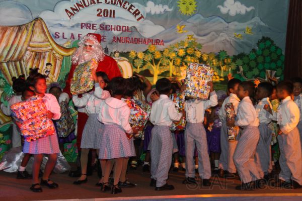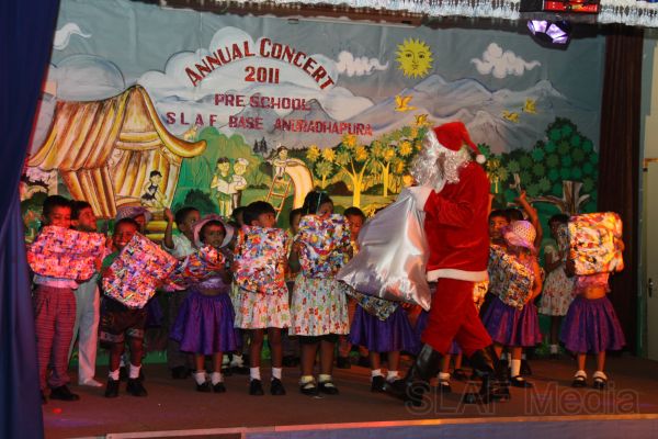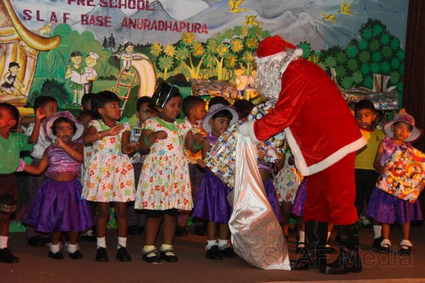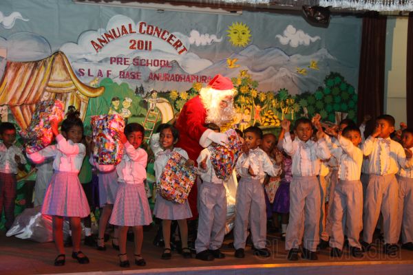 During the Concert 45 Children of LKG and UKG classes were staged their performance. Gracing the occasion as Chief Guest was Base Commander Air Cdre PDKT Jayasinghe of Sri Lanka Air Force Base Anuradhapura. End of the event prizes and certificates were also distributed among the all children by the Chief Guest and Santa clause. All formation COs, other Officers and men were also present to witness the event.
