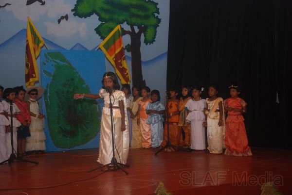 An ever eager and enthusiastic group of 93 children from the SLAF preschool, China Bay illuminated the event whilst displaying no stage fright at all. A cascade of events including songs, dances, and speeches and nursery rhymes with multi cultural themes and multi ethnic exposure brought about more colour to the event.