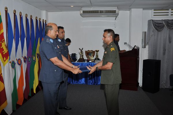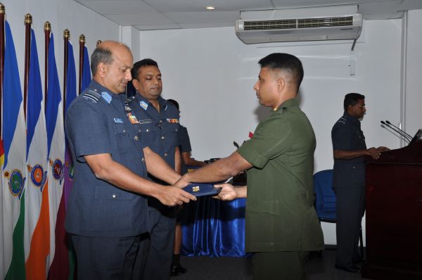 A total of 23 Officers from the Air Force in the rank of Squadron Leaders and Flight Lieutenants, 4 Officers from the Army in the rank of Majors and 4 Officers from the Navy in the rank of Lieutenants followed and graduated from this course successfully. The Junior Command and Staff College is accredited to the University of Kelaniya and all Officers who fulfill the required criteria will be awarded with a PG Diploma in Defence management.