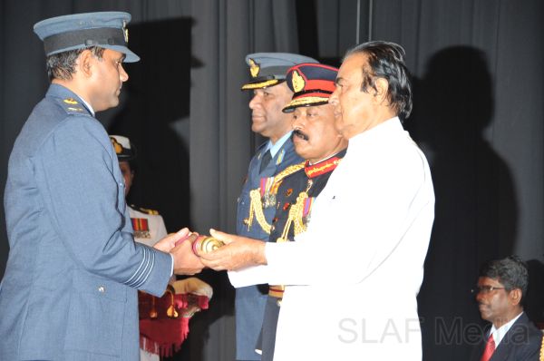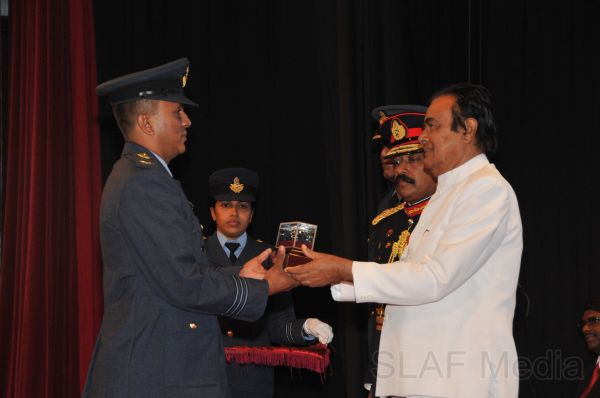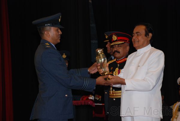 Wg Cdr S P V K Senadheera RSP of the Administrative Regiment Branch received the Commandant’s ‘Golden Pen Award’ for the best Research paper of the year from amongst student officers of the Army, Navy and Air Wings and also received the “Golden Owl Award” which is awarded to the Student Officer who becomes 1st in order of Merit from the Air Wing.