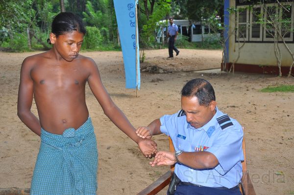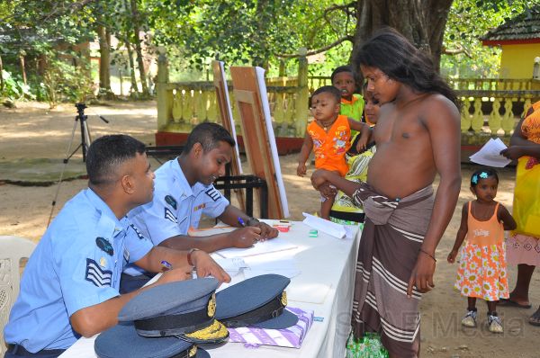 For the first time in the history of Sri Lanka a special Dental clinic and awareness programme on Oral Health for the indigenous people was organized and conducted by the Sri Lanka Air Force under the guidance of Air Marshal Harsha Abeywickrama Commander of the Air Force and Head of the Indigenous people, Vishwa Keerthi Vanaspathy Uruwarige Wannillaaththo on 19th and 20th January in 2012 at Dambana Kanishta Vidyalaya.