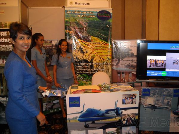 This event was organized by Ceylon tourism board and the SLAF Helitours team also participated to promote their new marketing aspects showing a new face as well. The Helitours (Pvt) Ltd. Exhibition cell was consisted of various methods of advertisements regarding the expanded scheduled and charter flights operated by the SLAF and the fabulous packages offered by Helitours with the combination of the newly developed Eagles Golf Course and Marble Beach holiday resort at Chinabay. And also, it was most notable that all of the local and international tourists experienced a remarkable difference in the Helitours organization as a newly blooming tourism centre.