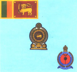 The SLAF Base Katunayake President’s Colour will be of Silk, the dimensions are 3 feet 9 inches in length and breadth, exclusive of the pocket of the pike and the fringe to be of 02 inches. Colour will be of ice blue background with Lion flag at top left corner, the approved emblem of the Sri Lanka in the centre and the Emblem of SLAF Base Katunayake at the bottem right corner of the flag. The border is decorated with blue and gold tassels of one-inch length.
