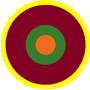 The Royal Ceylon Air Force then like other Air Forces decided to use this roundel as an Air Force ensign with colours of the flag of its particular country. Subsequently the three circles were changed to two circles of red/crimson and yellow with green and saffron wings depicting the colours of our present National flag of the country.