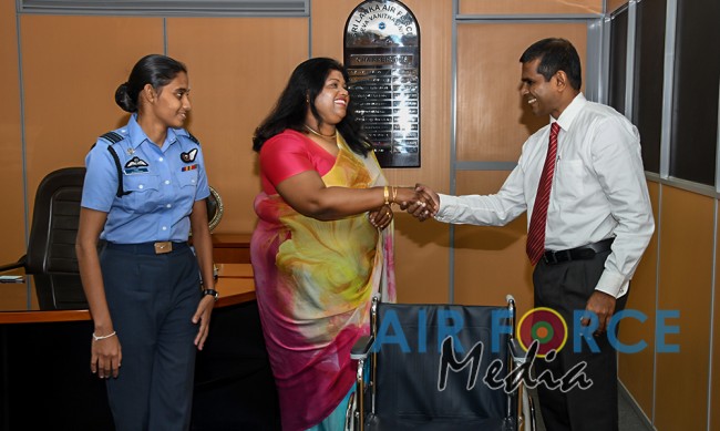 The Chairperson of SLAF SVU Mrs. Mayuri Prabhavi Dias accepted five (05) wheel chairs donated by Sampath Bank today (21 Aug 2019) at the Seva Vanitha Unit. The Group Chief Human Resource Officer of the Sampath Bank, Mr. Aruna Jayasekara handed over the donation.