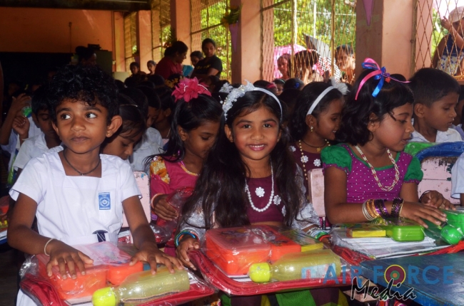 Under Community Service Projects, the Seva Vanitha Unit of SLAF Base Vauniya, hosted a charity programme under the patronage and guidance of the Base Commander, Air Commodore LH Sumanaweera, on 14 December 2019 to donate the entire stationary requirement of 156 underprivileged students of the Mahakachchakkodiya Primary School for the upcoming year.