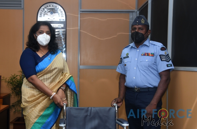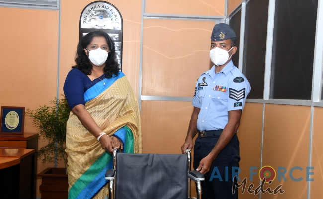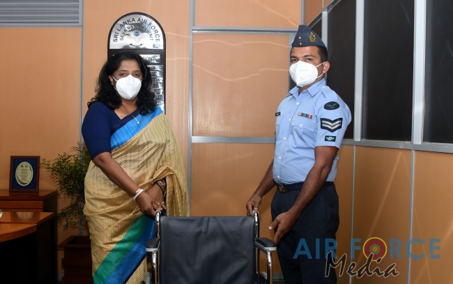 The Chairperson of the SLAF Seva Vanitha Unit, Mrs. Charmini Pathirana handed over four (04) Wheel Chairs yesterday (27 January 2021) at the Seva Vanitha Unit AFHQ Colombo.