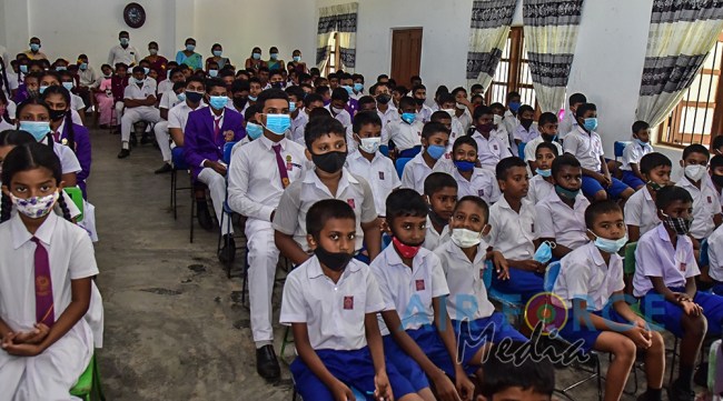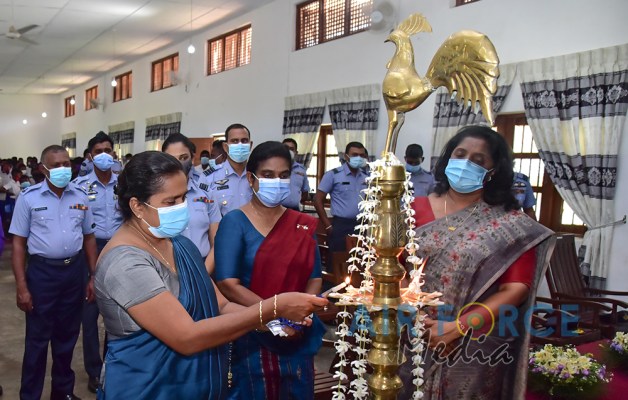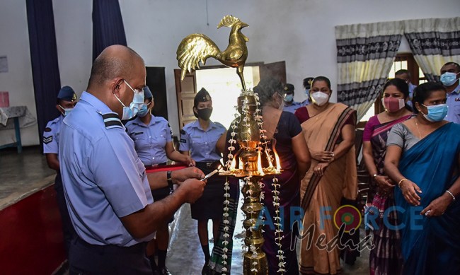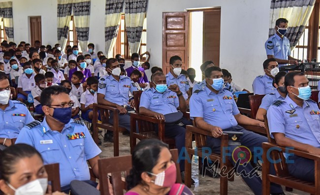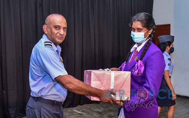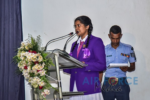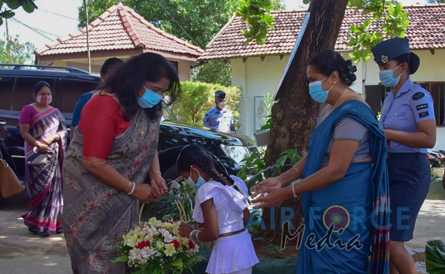 The event was graced by the Chairperson Mrs. Charmini Pathirana as the Chief Guest. Mrs. Rosy Labrooy the spouse of the Director Ground Operation, Mrs. Nirodha Thennakoon the spouse of the Director Welfare, Mrs. Ajantha Jayawardana the spouse of the Acting Director Electronics & Telecommunication Engineering, Acting Eastern Air Commander and Commandant of SLAF Academy China Bay, Air Commodore Bandu Edirisinghe and President of Seva Vanitha Unit at SLAF Academy China Bay, Mrs. Krishanthi Edirisinghe, a cross section of Officers and Other Ranks of SLAF Academy China Bay along with the staff of the SLAF Seva Vanitha Unit, teachers and students of the school witnessed this event.