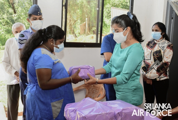 The Commanding Officer of the Combat Training School, Air Commodore Suresh Fernando, President of Seva Vanitha Unit at Diyatalawa, Mrs. Shanika Fernando, Regional Medical Officer Health , Assistant Government Agent of Bandarawela, a cross section of Officers and Airwomen from the Combat Training School at Diyatalawa attended the handing over ceremony while giving due consideration to COVID 19 preventive and precautionary measures. Conversely, dry ration packs were donated to expecting mothers who attended the Maternity Clinic.