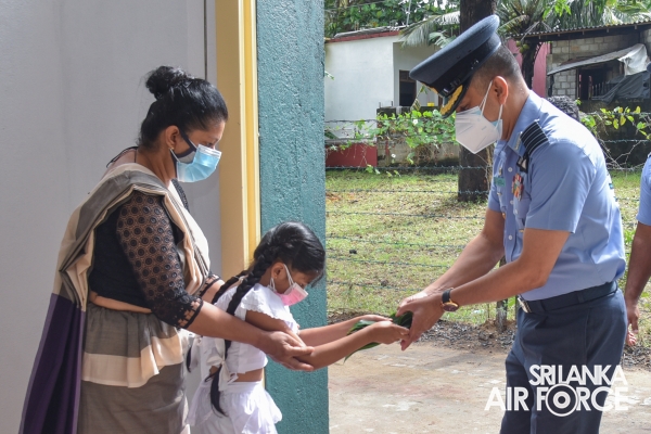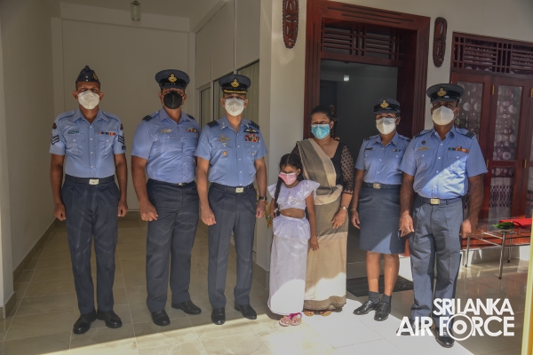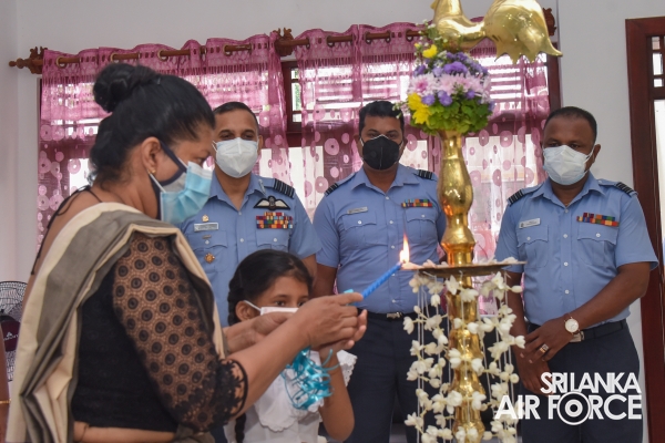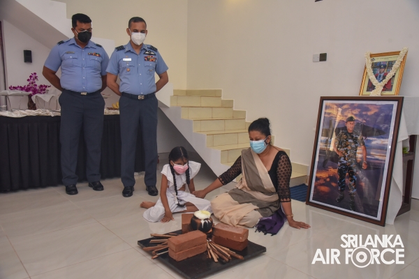 The partially constructed house of Squadron Leader KKH Ravindra (Deceased) was fully renovated by the SLAF Seva Vanitha Unit and handed over to the family this morning (22 September 2021). The house renovation was carried out under the guidance of the Chairperson of SLAF Seva Vanitha Unit, Mrs. Charmini Pathirana and the house warming ceremony was held at Makuluduwa, Piliyandala under the patronage of the Base Commander of SLAF Base Ratmalana Group Captain Asela Jayasekara.