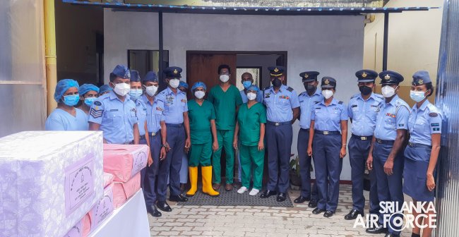 The CO SLAF Station Koggala, Medical Officer In-charge Dr. RM Kotambage and Medical Staff of Meepe Regional Hospital, limited number of Officers and Other Ranks from SLAF Station Koggala attended for the handing over ceremony while giving due consideration to COVID-19 preventive measures.