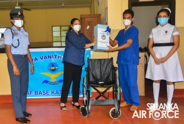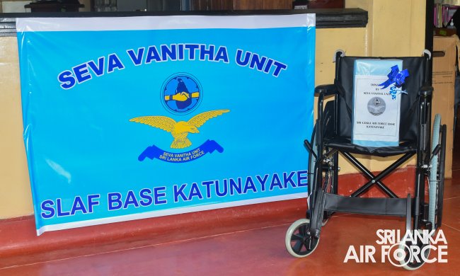 The President of Seva Vanitha Unit SLAF Base Katunayake, Mrs. Enoka Rajapaksa visited the ward to present the donated items which were a Wheel Chair and a Blender to the Hospital and the inmates. Dr. Thaheer from Ward No.03 accepted the donations on behalf of the Hospital Management. The Officer in Charge and the members of the Seva Vanitha Unit at SLAF Base Katunayake participated for the event.