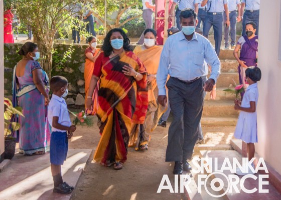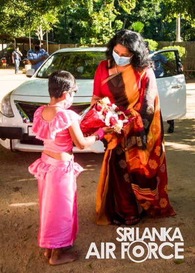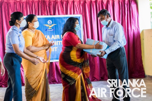 President Seva Vanitha Unit at SLAF Station Ampara, Mrs. Priyanwadha Gunawardana, a cross section of Officers, Other Ranks of SLAF Station Ampara, Teachers and Students with their parents of Abayapura Vidyalaya were also presented for the ceremony. The event was held under the strict health guidelines in view of prevention of COVID-19.