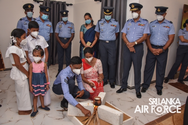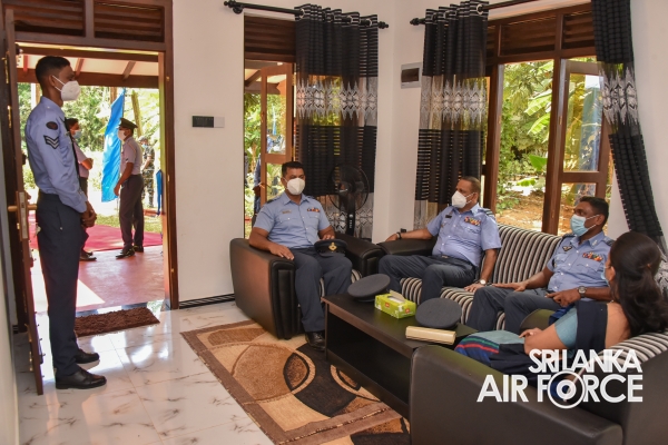 The House Warming Ceremony was held today (30 January 2022) at Jambugahawaththa, Kakanadura. On behalf of the Commander of the Air Force, the fully completed house was handed over to Corporal Abeysundara R by the Air Secretary, Air Commodore Kithsiri Leelaratne.