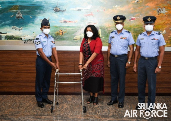 The Chairperson of the SLAF Seva Vanitha Unit, Mrs. Charmini Pathirana handed over mobility aids for deserving family members of serving personnel at Air Force Headquarters, Colombo.